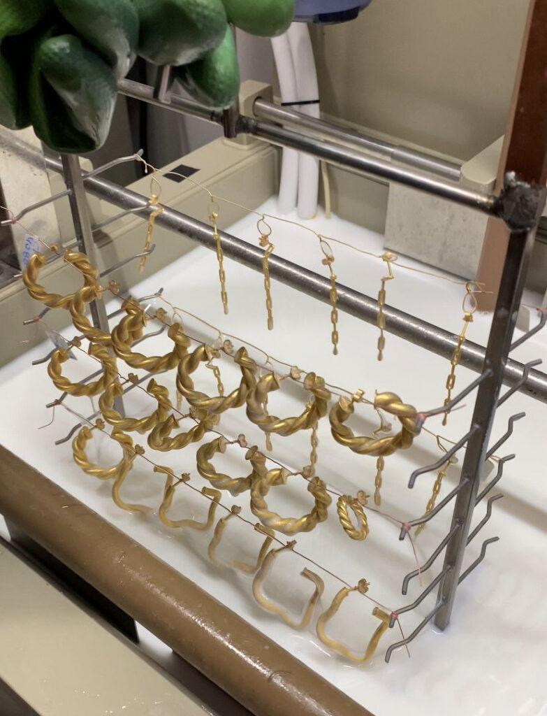 Trabalhamos com diferentes tipos de banho, como ouro, prata e ródio, sempre com controle rigoroso para garantir uniformidade e excelência.